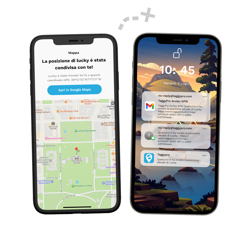 Ricevi avvisi istantanei sul tuo telefono con la localizzazione del tuo pet quando qualcuno inquadra il tuo TaggyPro. Grazie alle notifiche push, SMS ed email hai la sicurezza di essere immediatamente informato e di poter intervenire tempestivamente.